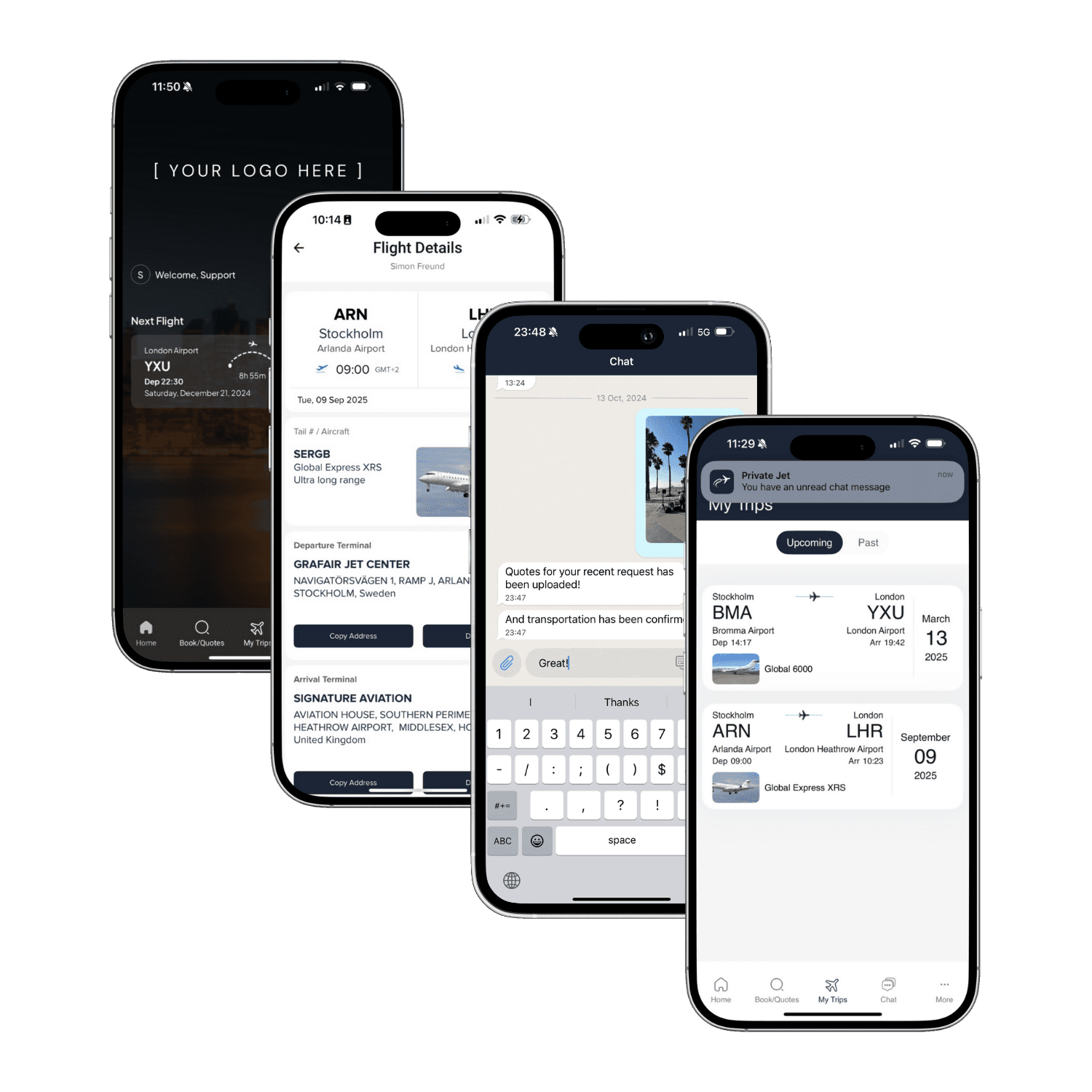 The Private Jet App platform is built for the charter brokers who value great client communication. Your clients get a moderne experience. Your team gets a structured way to stay in control.